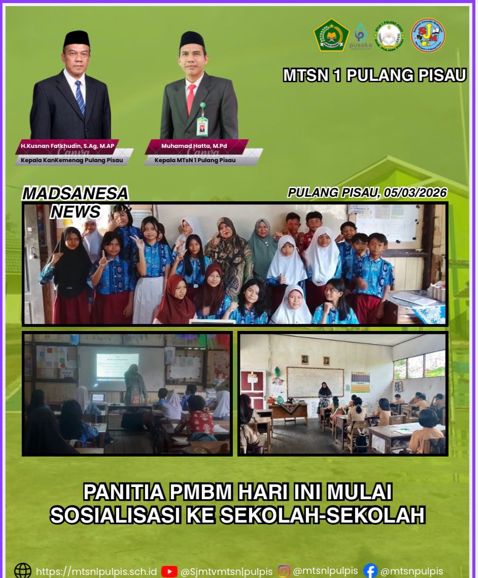 PULANG PISAU (Humas) Panitia Penerimaan Murid Baru Madrasah (PMBM) Tahun Ajaran 2026/2027 resmi memulai langkah strategisnya hari ini. Tim sosialisasi bergerak menuju sekolah-sekolah dasar di wilayah Pulang Pisau untuk memperkenalkan program unggulan dan lingkungan madrasah kepada calon peserta didik, [05/03/2026].
