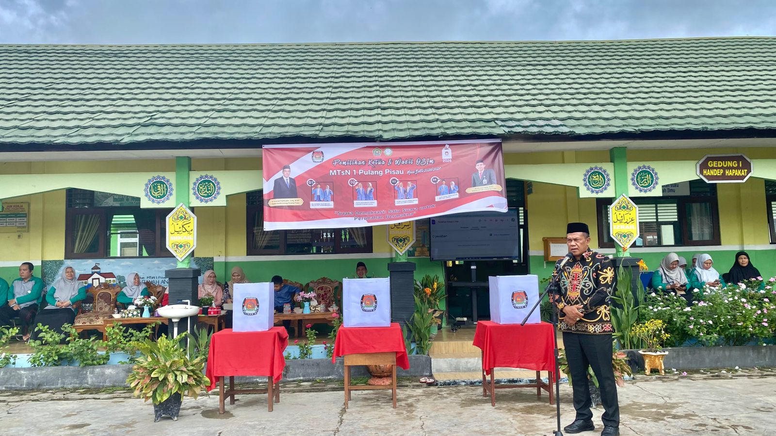 Dalam sambutannya, H. Kusnan Fatkhudin menyampaikan rasa bangga dan apresiasi yang tinggi terhadap langkah modernisasi yang diambil oleh MTsN 1 Pulang Pisau. Berbeda dengan cara konvensional, pemungutan suara kali ini sepenuhnya dilakukan melalui aplikasi web.