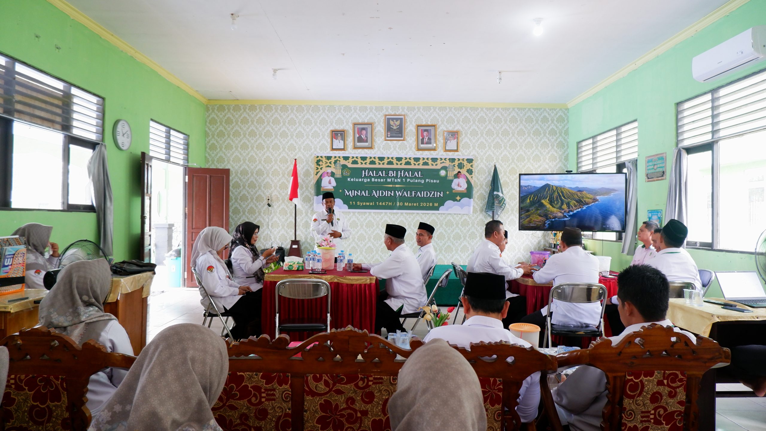 PULANG PISAU – Keluarga besar Madrasah Tsanawiyah Negeri (MTsN) 1 Pulang Pisau menggelar acara Halalbihalal dalam rangka Idulfitri 1447 H. Acara yang berlangsung khidmat ini dihadiri langsung oleh Kepala Kantor Kementerian Agama (Kemenag) Kabupaten Pulang Pisau, H. Kusnan Fatkhudin, S.Ag, M.A.P., pada Senin (30/03).