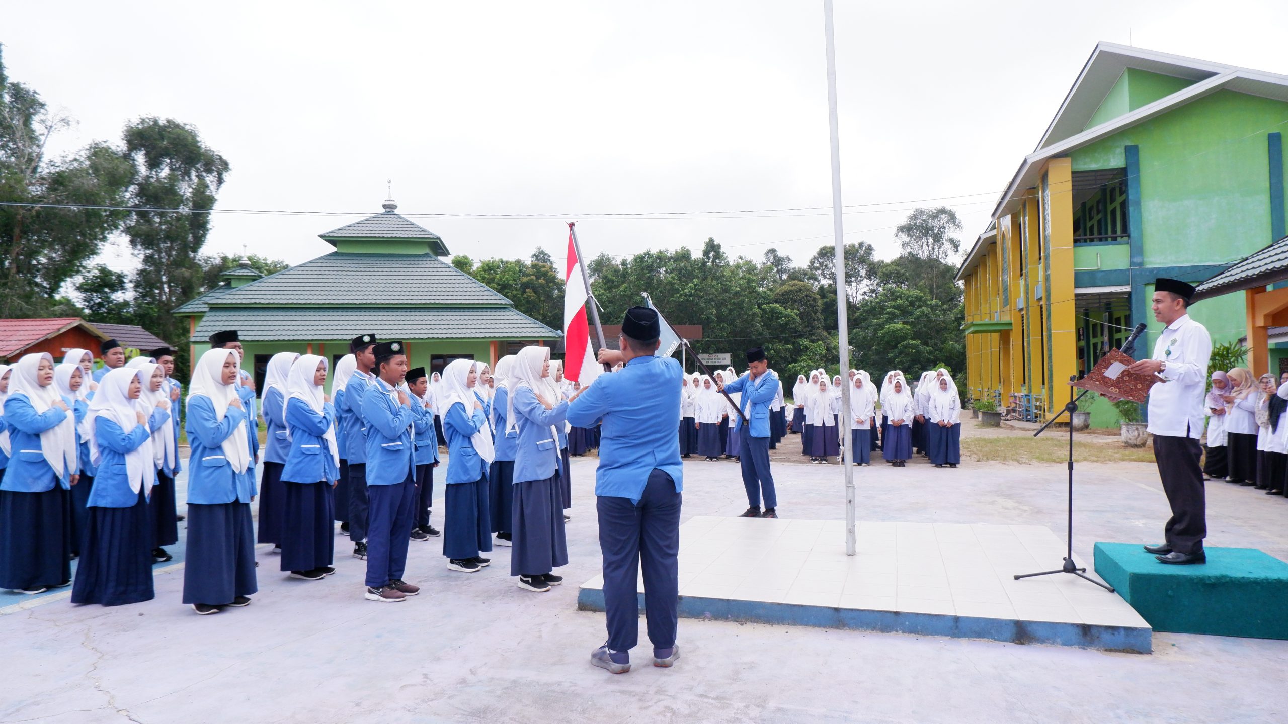 Acara pelantikan yang digelar di lapangan utama ini dipimpin langsung oleh Kepala Madrasah, Bapak Muhamad Hatta, M.Pd., dan disaksikan oleh seluruh dewan guru serta siswa-siswi.